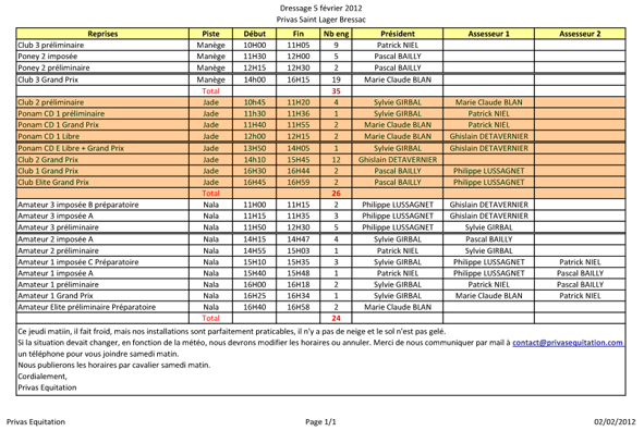 2012-02-05 Dressage horaires