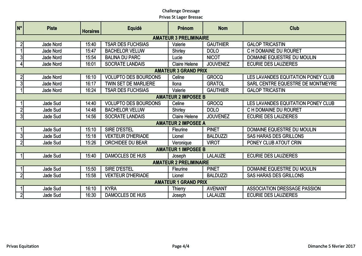 Horaires Cavaliers