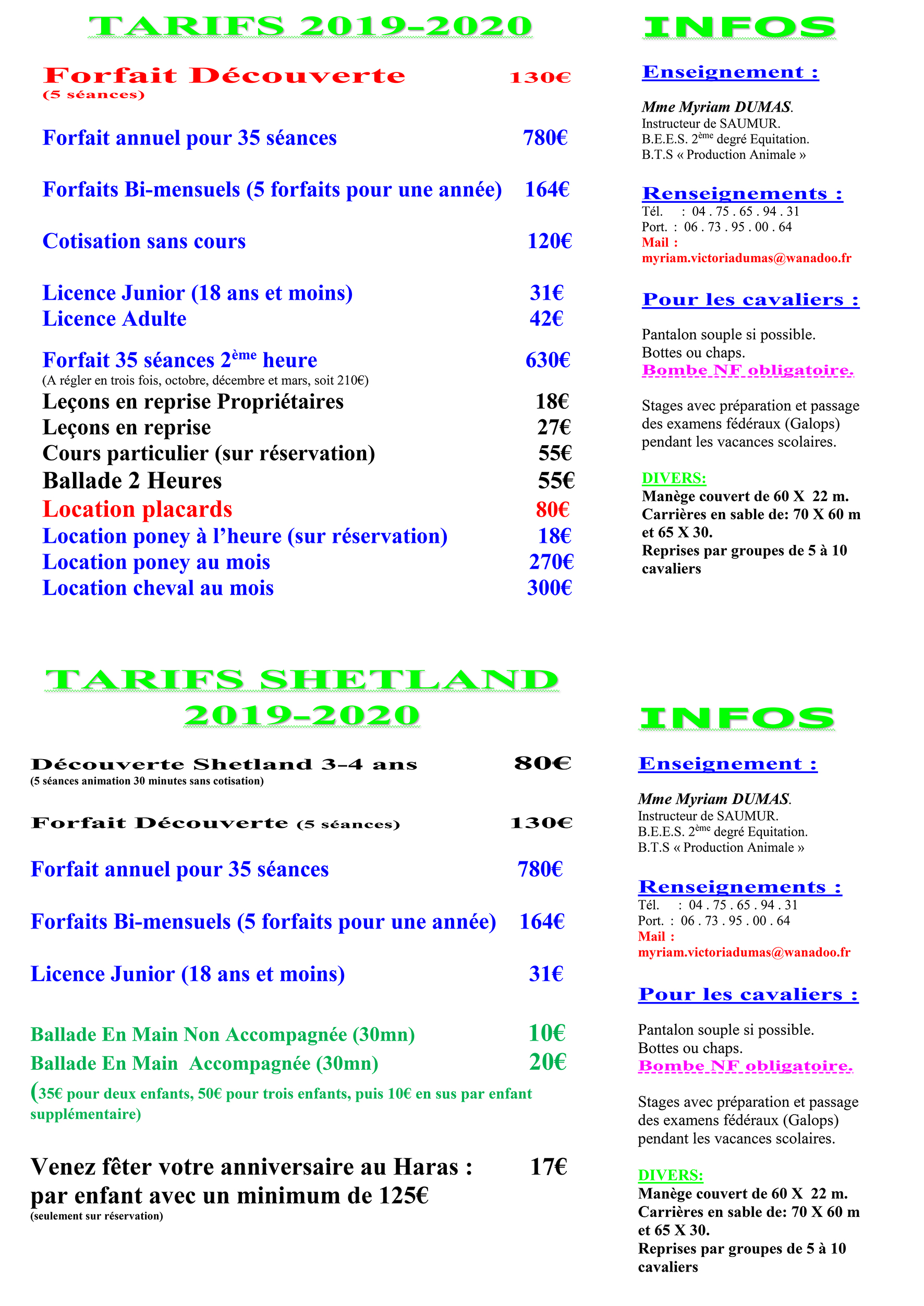 Tarifs